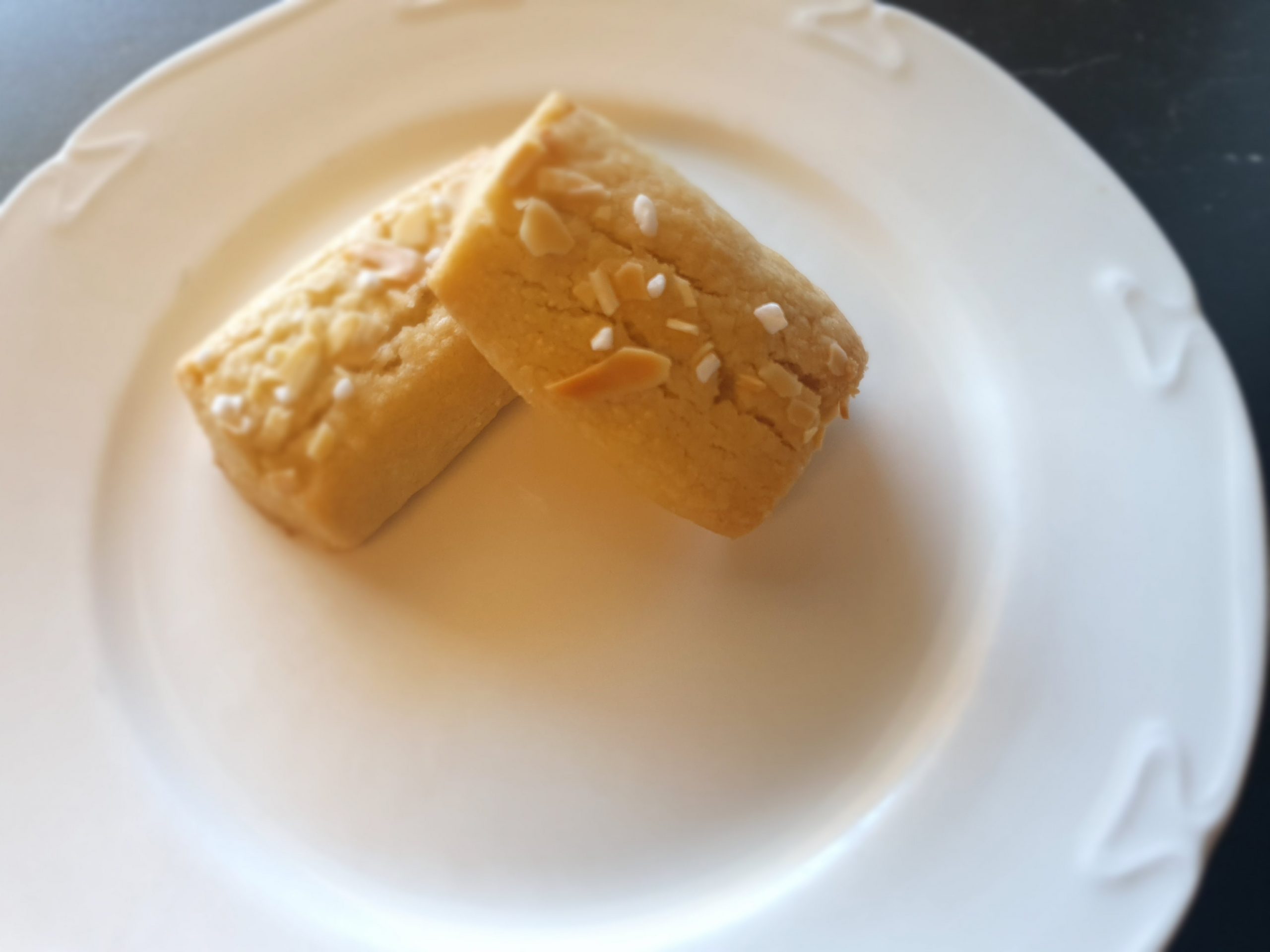 Innehåll: Sötmandel, bittermandelsolja, vetemjöl, strösocker, ägg och smör