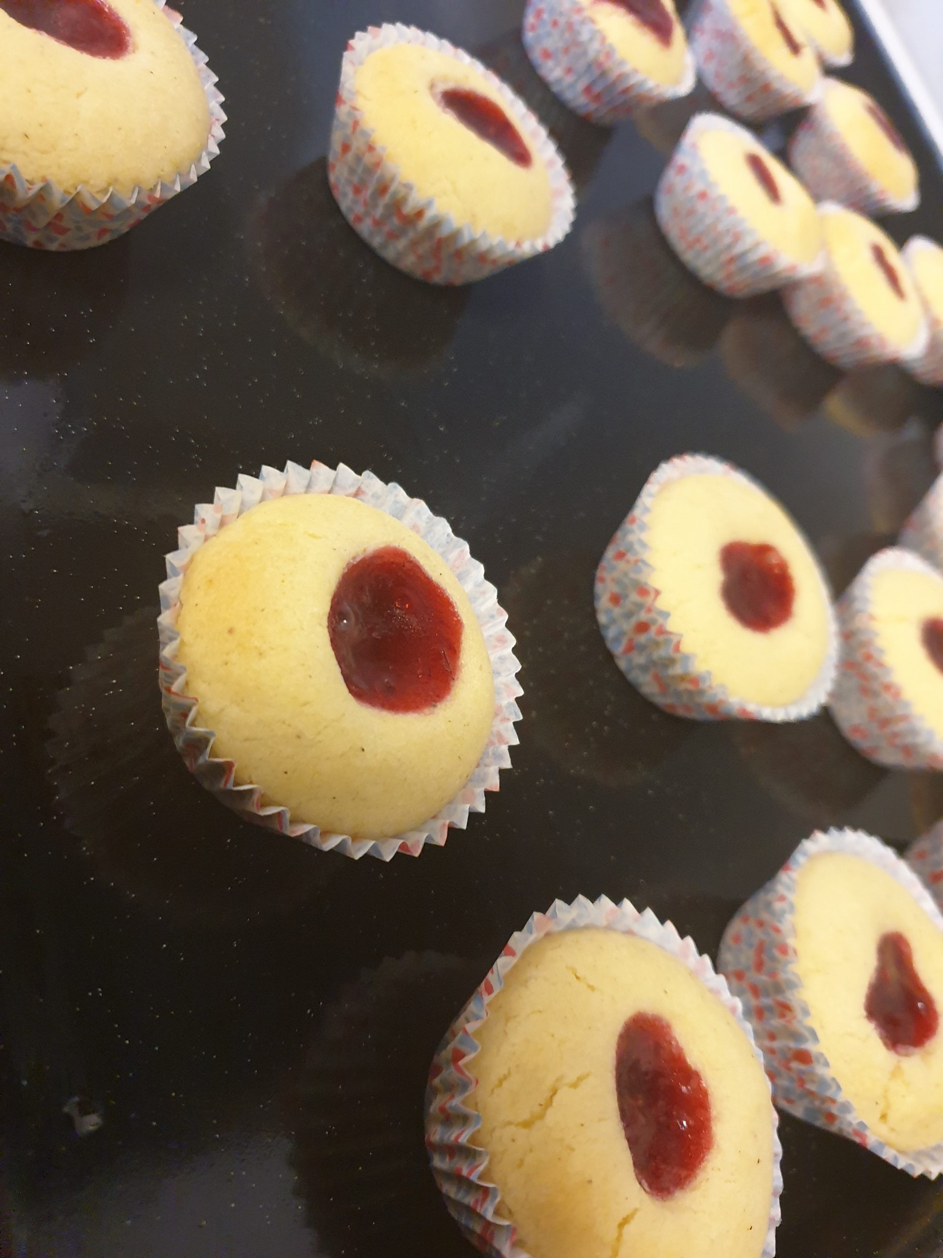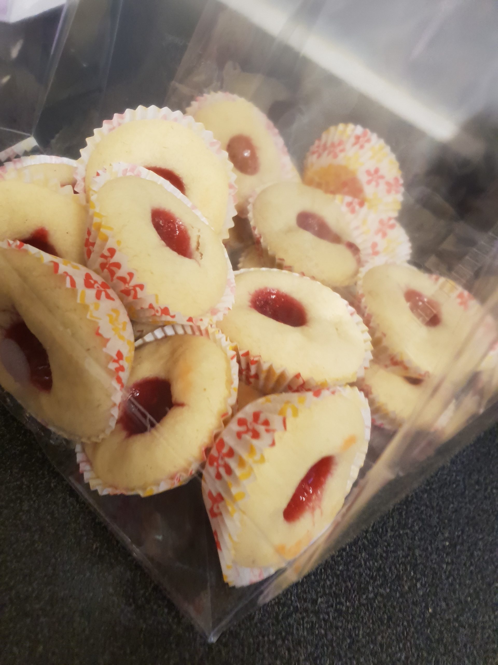 Innehåll: Vetemjöl, potatismjöl, strösocker, vaniljsocker, bakpulver, salt, smör och hallonsylt
