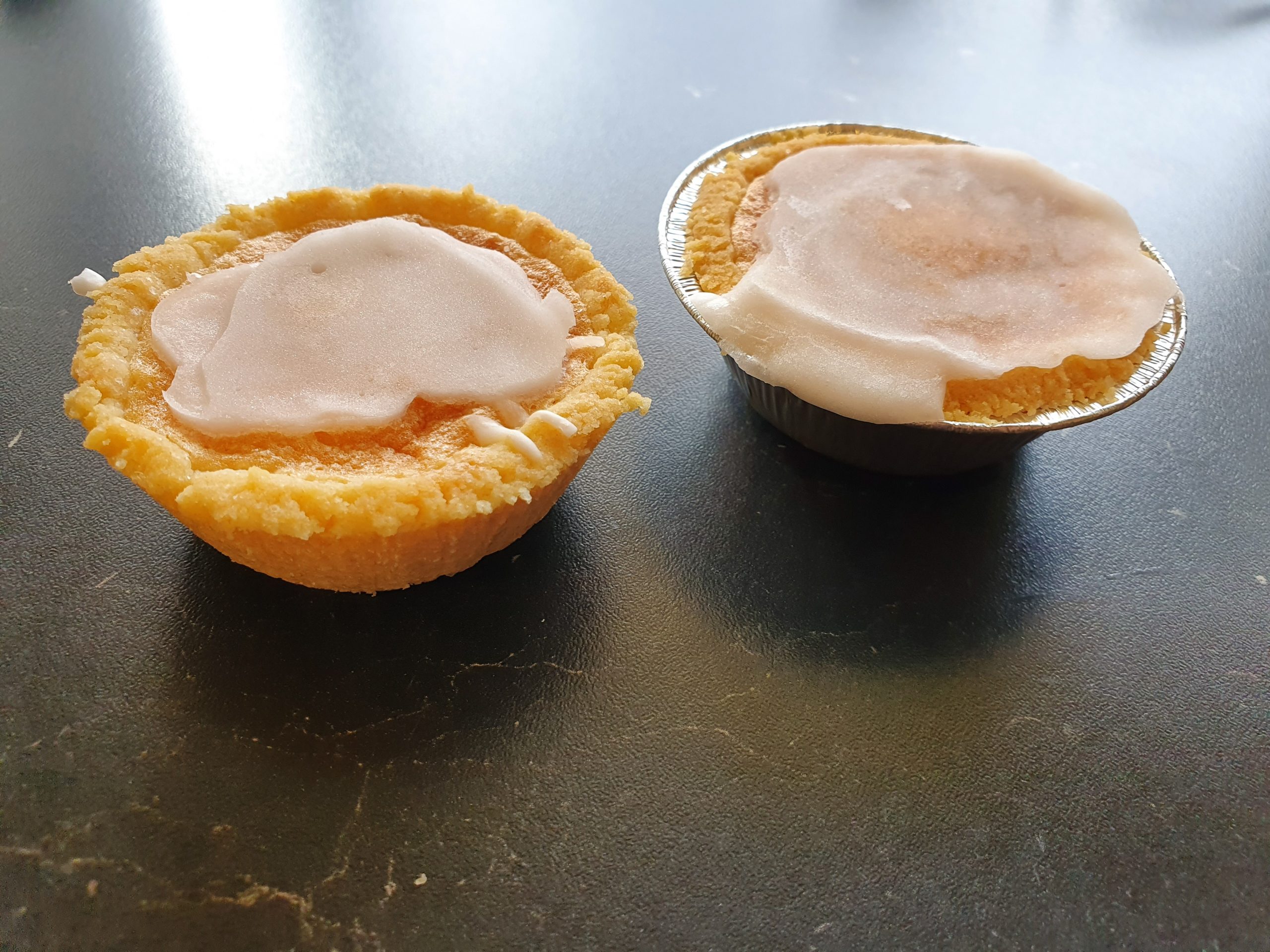 Innehåll: Vetemjöl, bakpulver, smör, strösocker, ägg och sötmandel.
