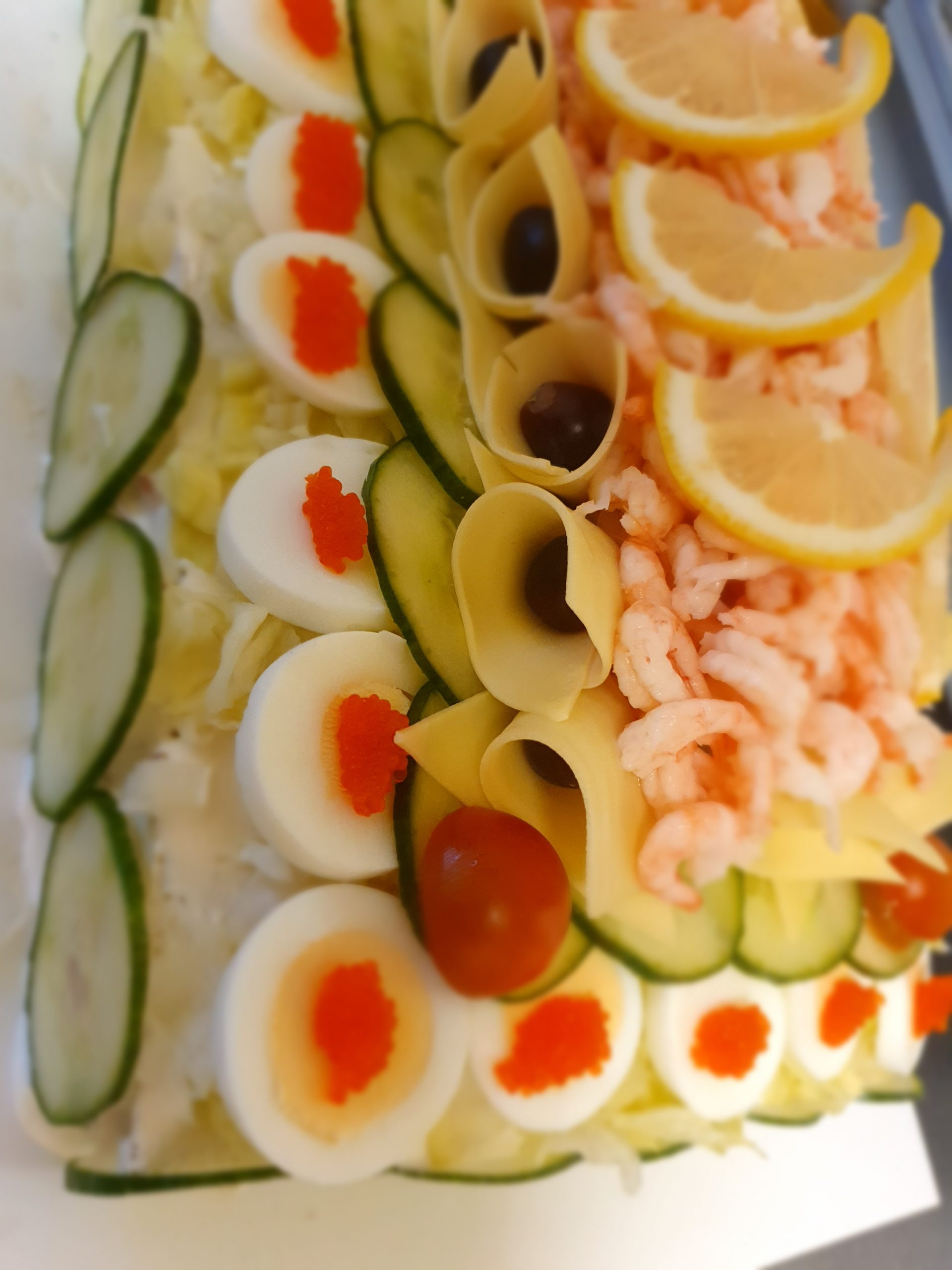Innehåll: Skagenröra, skinka, Cream fraiche, senap, vispgrädde, majonnäs och kaviar